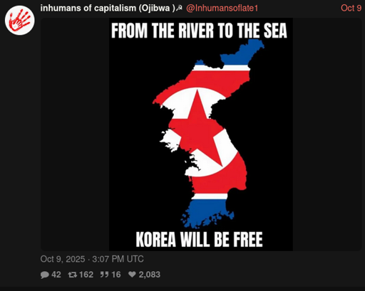 cm0002@lemmy.worldEnglish · edit-28 months agoHead Lemmy dev, main lemmy.ml admin, dessalines on the "DPRK is actually Good!" bent againplus-squarepinlemmy.worldimagemessage-square10linkfedilinkarrow-up15
