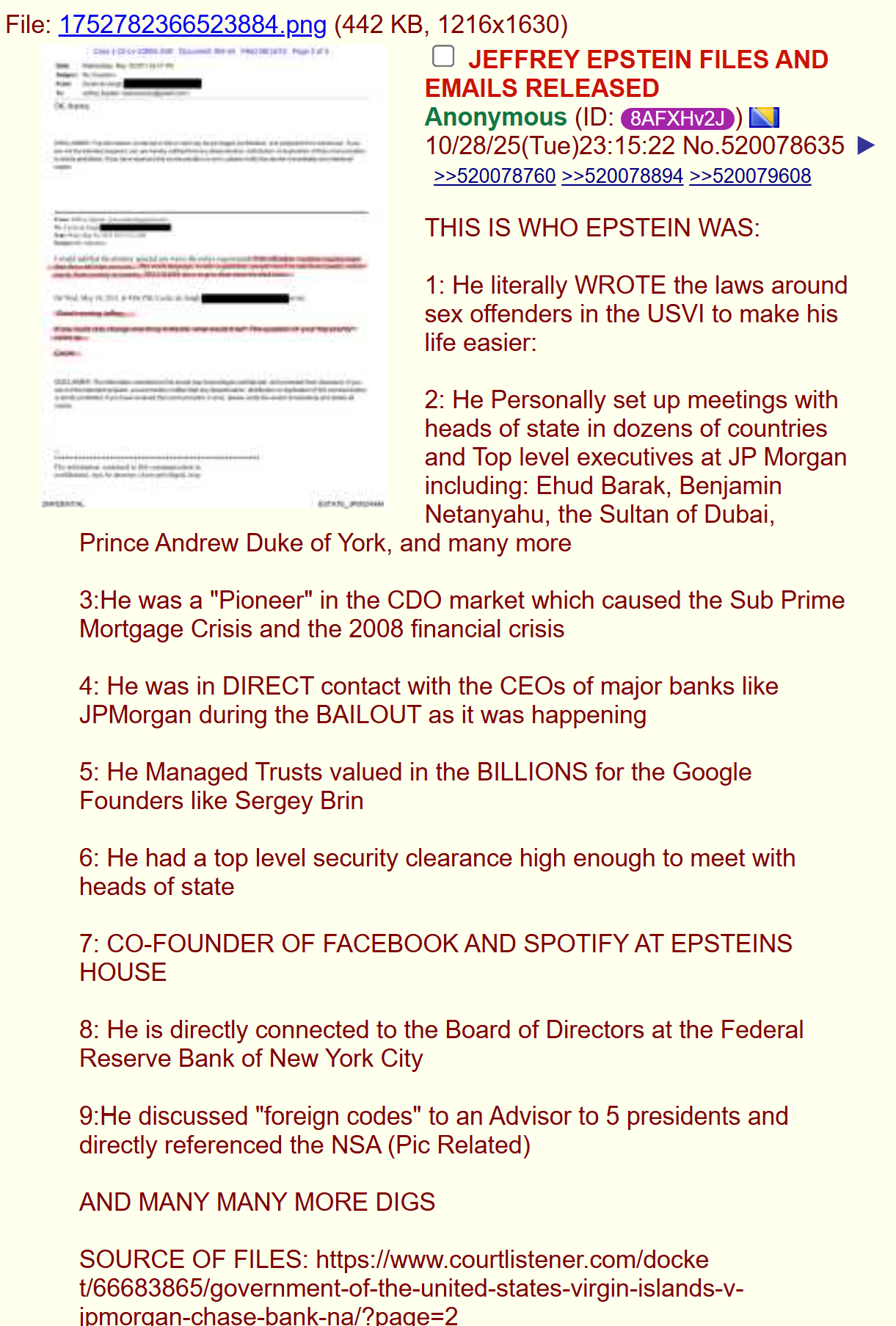 arrow-up12external-linkEpstein File drop: Government of the United States Virgin Islands v. JPMorgan Chase Bank, N.A., 1:22-cv-10904 - CourtListener.complus-squarewww.courtlistener.comGNR_RadioEnglish · 1 month agomessage-square0linkfedilink