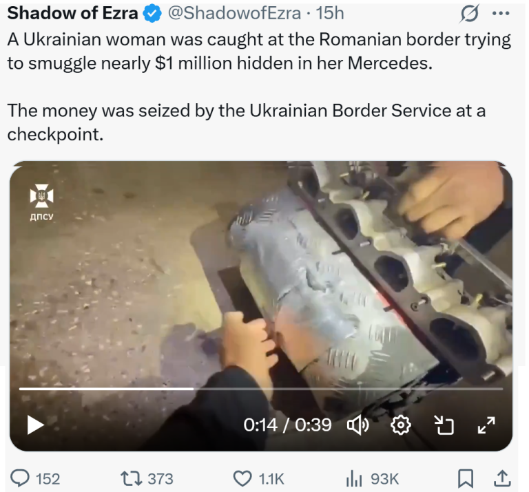 The money was seized by the Ukrainian Border Service at a checkpoint.