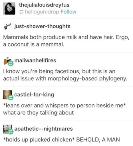BEHOLD! THE MAMMAL! IT GIVES MILK AND HAS HAIR!