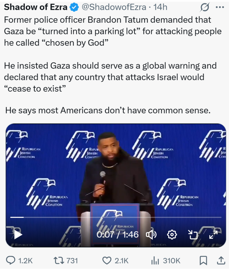 He insisted Gaza should serve as a global warning and declared that any country that attacks Israel would “cease to exist”