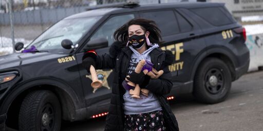 The determination in her eyes, the wind in her hair, with the police vehicle in the backdrop, the umm dildos, all make me wonder if this might one day be an iconic photograph of our times.