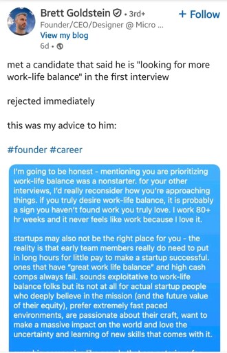 Tldr: Expecting your people to give up their personal life for work, it’s a clear sign that you are a terrible leader.